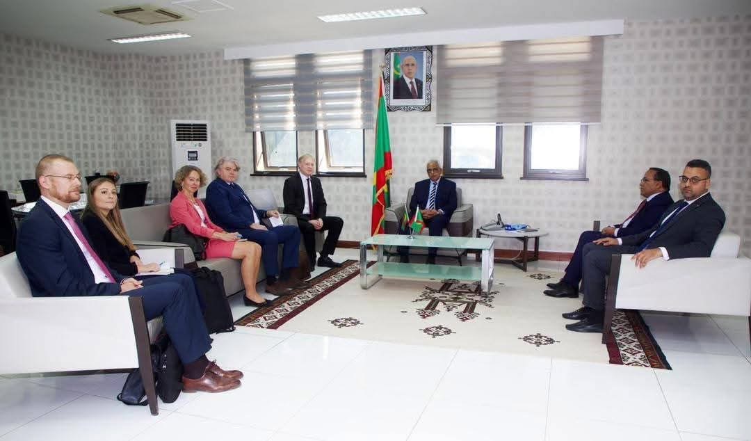 استقبل وزير الشؤون الاقتصادية والتنمية الدكتور عبد الله ولد سليمان ولد الشيخ سيديا، صباح اليوم الأربعاء بنواكشوط، بعثة من جمهورية ألمانيا الاتحادية تضم السفير فلوريان رايندل، ورئيس وفد الوزارة الاتحادية الألمانية للتعاون الاقتصادي والتنمية، مدير شؤون إفريقيا كريستوف راو. وجرى خلال اللقاء بحث آليات تعزيز الشراكة الاقتصادية بين البلدين، بما يتماشى مع أولويات موريتانيا التنموية الهادفة إلى تحقيق نمو متسارع وشامل. كما تم استعراض مستوى التعاون القائم وتشخيص فعالية آلياته، إضافة إلى مناقشة السبل الكفيلة بتطويره وتوسيع مجالاته. وتندرج هذه الزيارة في إطار المشاورات الثنائية المنتظمة التي تعقدها الحكومتان كل سنتين. وحضر الاجتماع الأمين العام لوزارة الشؤون الاقتصادية والتنمية يعقوب ولد أحمد عيشه، والمدير العام للتمويلات والتعاون الاقتصادي محمد سالم ولد الناني.