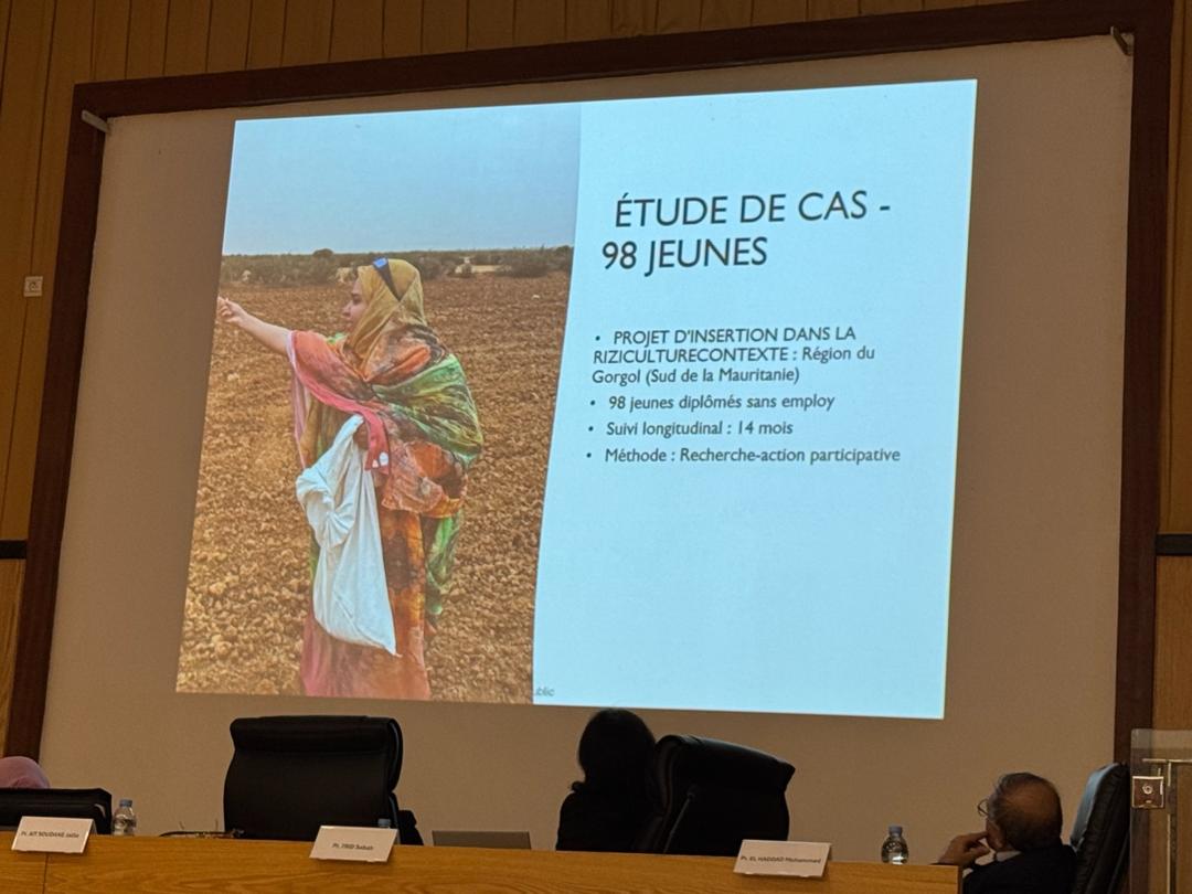 ركزت الأطروحة على “المشروع النموذجي لخلق فرص عمل في قطاع الزراعة” (2024-2025)، الذي نفذته الوكالة الوطنية للتشغيل وشركة صونادير بالشراكة مع وزارات الزراعة والسيادة الغذائية، وتمكين الشباب والتشغيل، والتكوين المهني. يندرج هذا المشروع ضمن برنامج الرئيس محمد ولد الشيخ الغزواني لتمكين الشباب وتوفير فرص عمل مستدامة، حيث يمنح حاملي الشهادات عقود أراضٍ زراعية وقروض ميسرة لزراعة الأرز، مع تعزيز التوظيف المحلي.