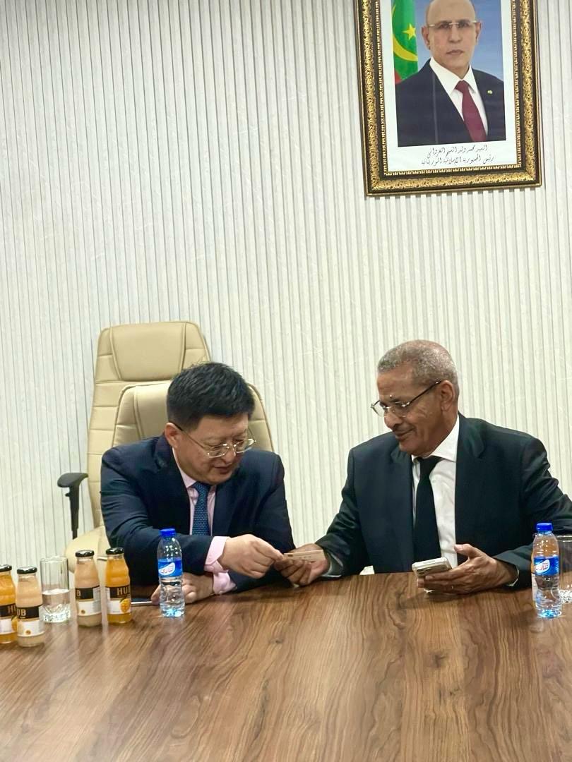 استقبل المدير العام لميناء نواكشوط المستقل، السيد لمرابط بناهي، محاطًا بمعاونيه، سعادة سفير جمهورية الصين الشعبية لدى موريتانيا، السيد تانغ زونغ دونغ، مرفوقًا باثنين من معاونيه، وذلك في إطار زيارة رسمية تهدف إلى تعزيز علاقات التعاون بين الجانبين.